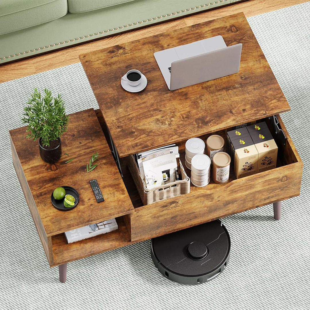 Podizna ploha pretvara ga iz klasičnog coffee stola u funkcionalno mjesto za rad, obrok ili učenje – bez napuštanja kauča. -