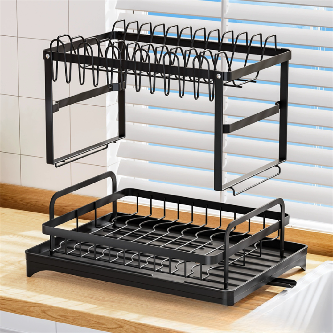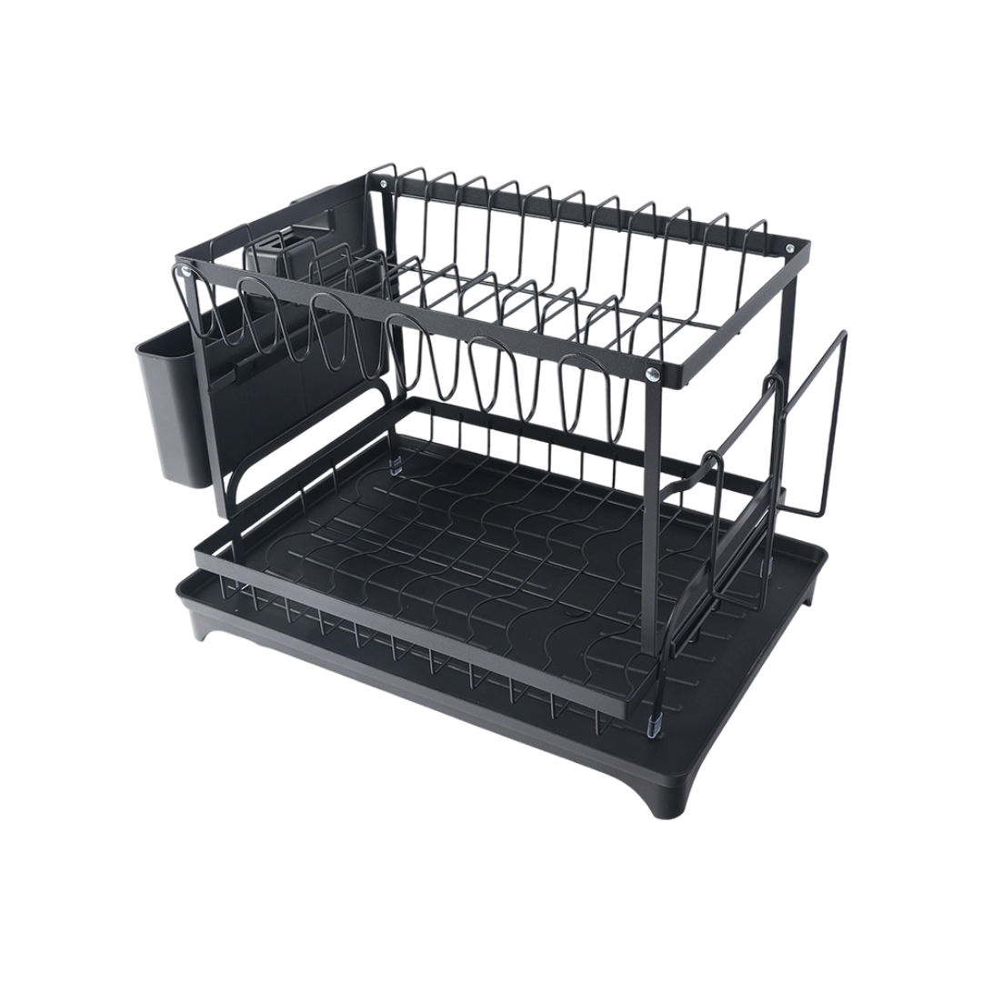 Unesite sofisticiranost i funkcionalnost u svoju kuhinju s ovim elegantnim dvoetažnim ocjeđivačem posuđa u modernoj mat crnoj boji. Kombinacija izdržljivog metala s praškastim premazom i profinjenog industrijskog dizajna čini ga savršenim spojem stila i praktičnosti.