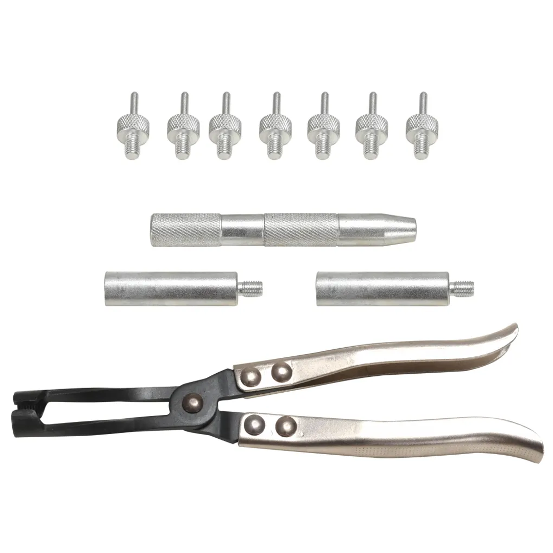 S ovim kliještima s dugačkom ručkom, postavljanje i uklanjanje brtvi postaje lakše nego ikad prije. 💪🔧 Ne morate se više mučiti s teško dostupnim samozatvarajućim svornjacima jer su naša kliješta dizajnirana da dosegnu i najskrivenije kutke. 🚀🔍 Unutarnji navoji na adapterima i ozubljenja na čeljustima jamče čvrst zahvat i sigurno obavljanje posla. 🛠️🔒 S ručkama obloženim hrapavom teksturom, vaš je doseg maksimalan, a proklizavanje stvar prošlosti. 🌟✨