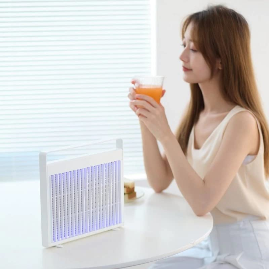 Ova ultratanka i lagana UV lampa učinkovito uništava komarce pomoću bioničke tehnologije privlačenja i snažne električne mreže. Zahvaljujući dvostrukom načinu upotrebe (može se objesiti ili postaviti), savršena je za korištenje kod kuće, u vrtu, uredu ili na putovanju. Sigurna je za ljude, tiha u radu i lako se puni putem Type-C kabela.