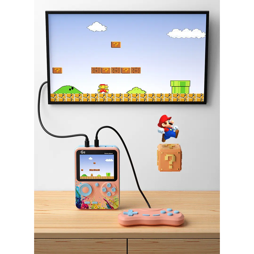 Ova igraća konzola dizajnirana je kako bi pružila nostalgično iskustvo igranja s klasičnim retro igrama. Dolazi s 500 prethodno instaliranih igara i podržava više jezika za širu publiku. Paket uključuje kontroler, konzolu, punjač i kabel za napajanje, sve uredno upakirano u kutiju u boji. Kompatibilna je s jednim kontrolerom i podržava AV izlazni video preko TV-a, što olakšava povezivanje i igranje na većem zaslonu.