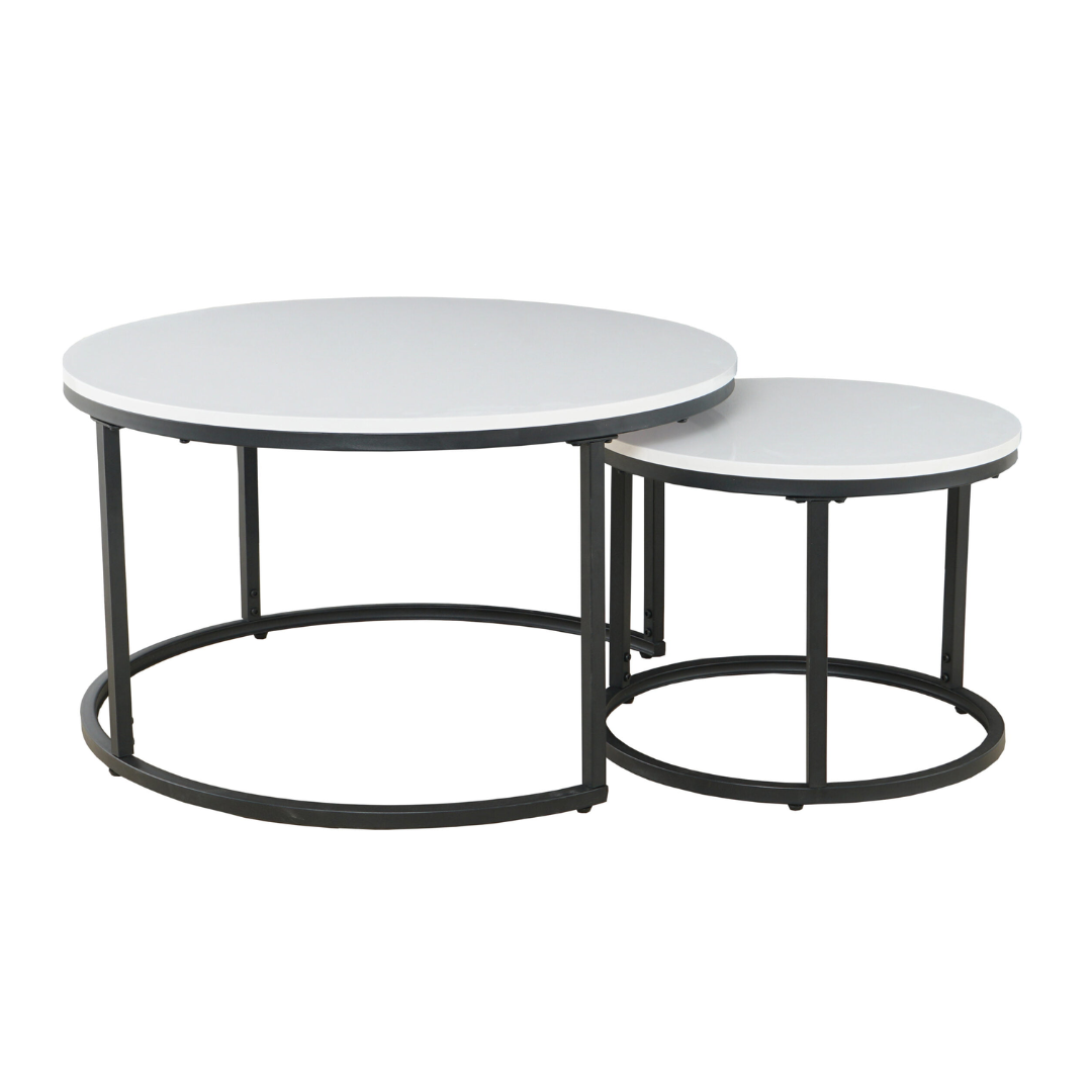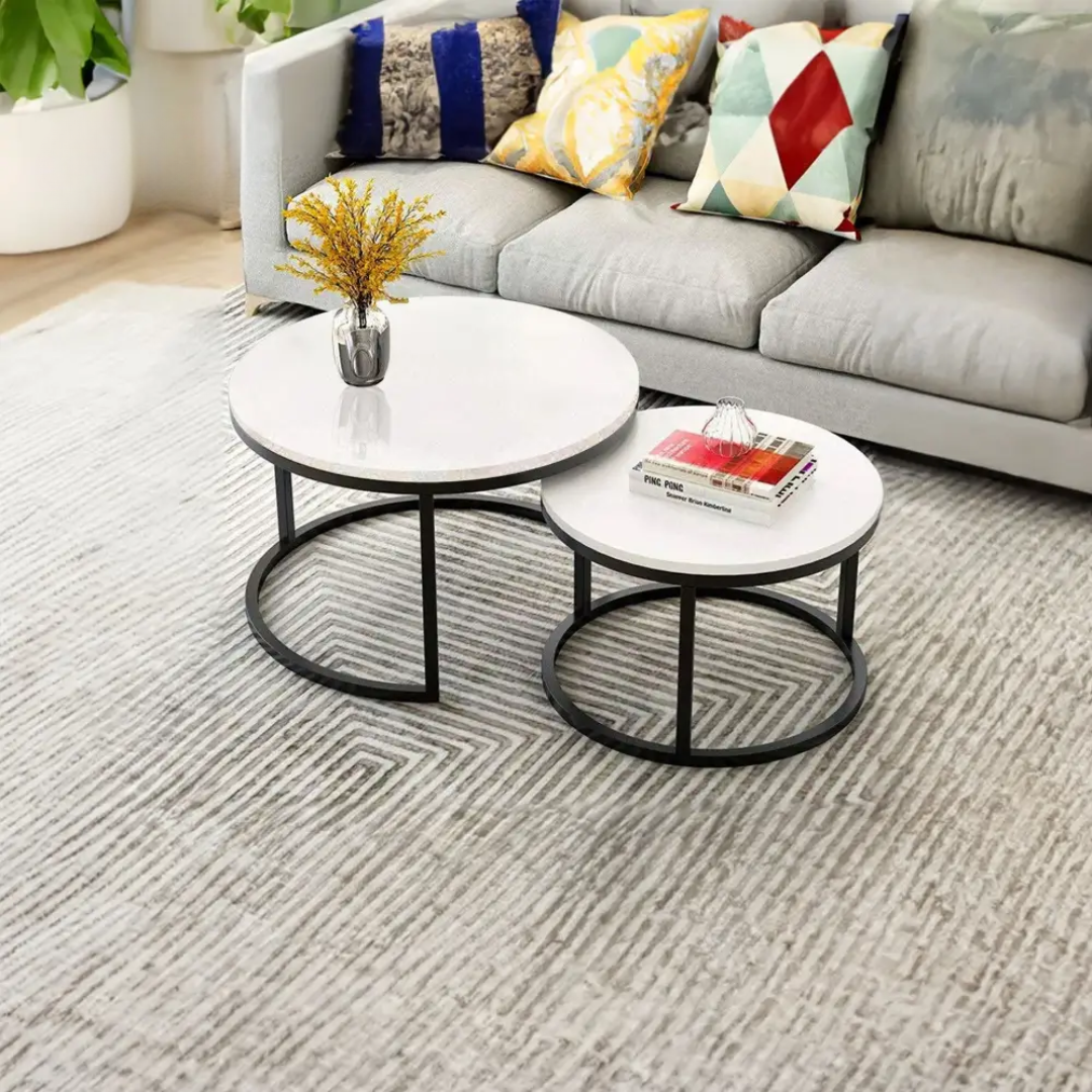 Unesi suvremen i elegantan izgled u svoj dnevni boravak uz ovaj set modernih stolića za kavu minimalističkog dizajna. Kombinacija bijele ploče i crnih metalnih nogu savršeno se uklapa u svaki interijer – od klasičnog do industrijskog stila.