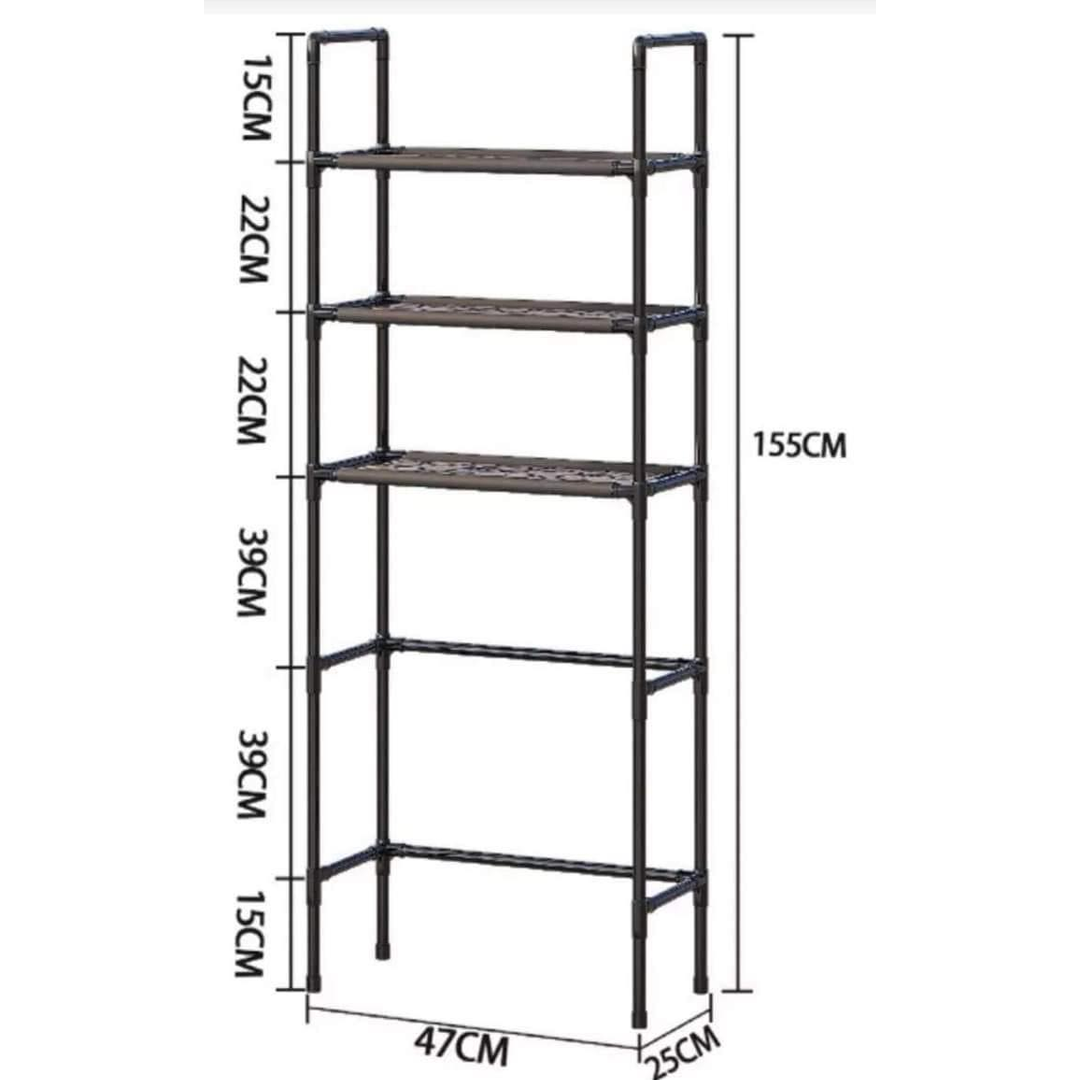 Višenamjenski: Ovaj stalak je svestran i može se koristiti iznad WC-a i perilice rublja za pospremanje raznih predmeta poput deterdženata i košara. Također je savršen za postavljanje cvijeća i biljaka na balkonu radi lijepog prikaza.