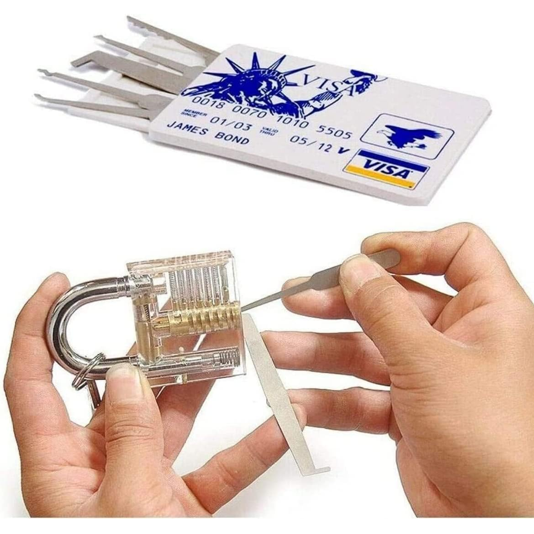 Ovaj univerzalni alat za otključavanje, skriven u obliku bankovne kartice, idealan je za sve koji žele poboljšati svoje vještine otključavanja brava. Set je dizajniran za profesionalne bravare i entuzijaste koji žele savladati različite tehnike otključavanja kroz ponovljeno učenje i vježbanje.