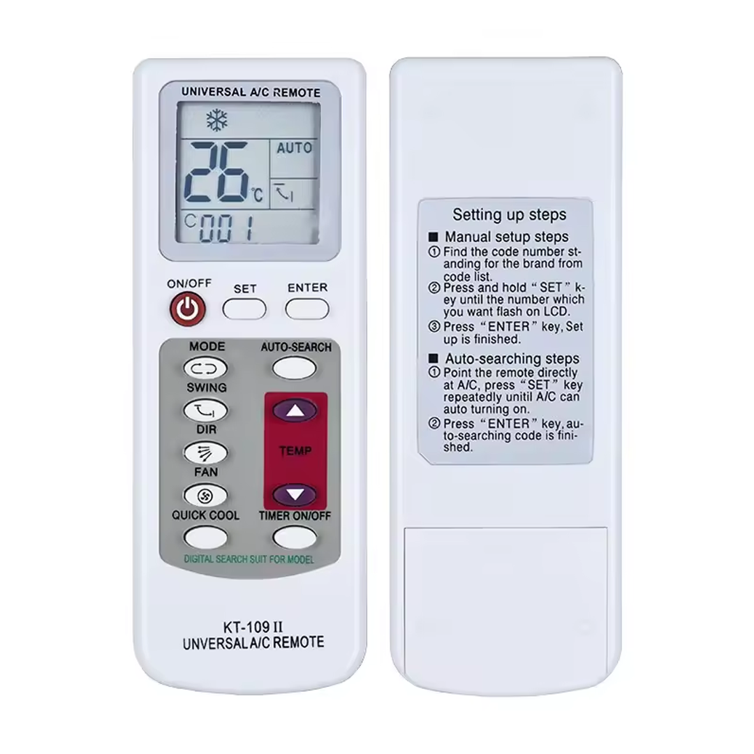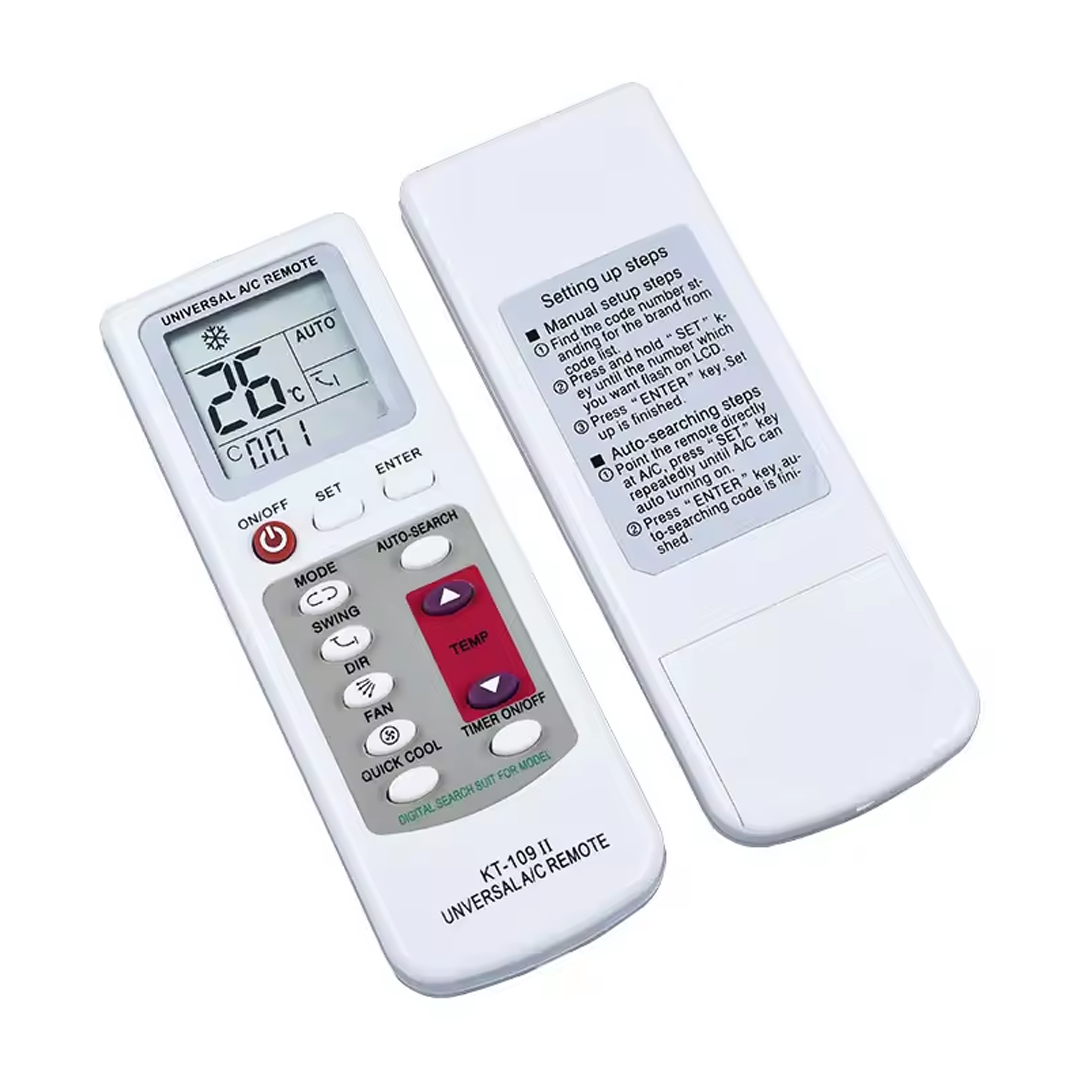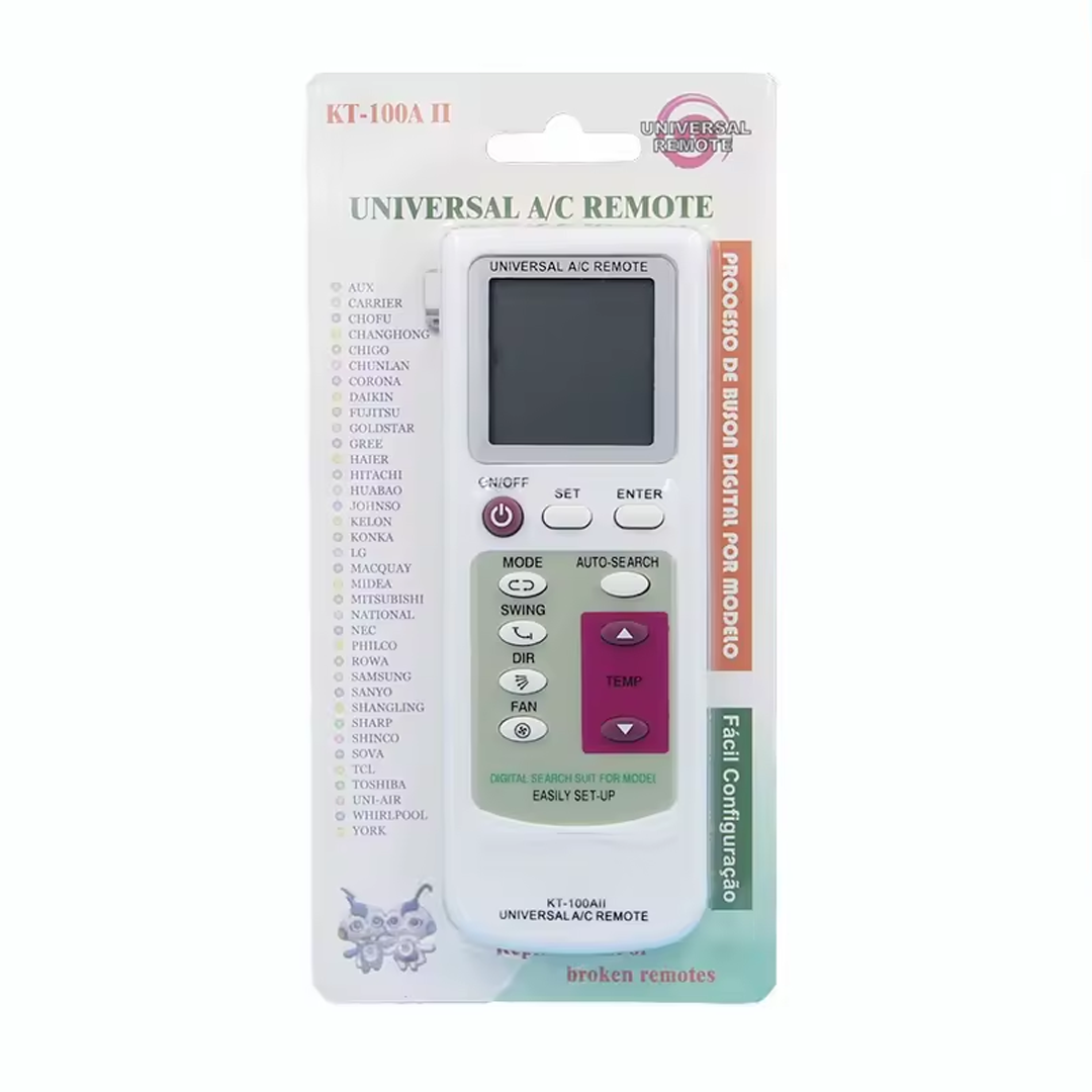 Univerzalni daljinski upravljač za klima uređaje podržava više od 1000 različitih brand-ove klima uređaja. Vrlo je jednostavan za korištenje, a koristi baterijske uloške AAA (nisu uključene u pakiranju). Opremljen je sa preglednim LCD zaslonom sa satom i temperaturom.