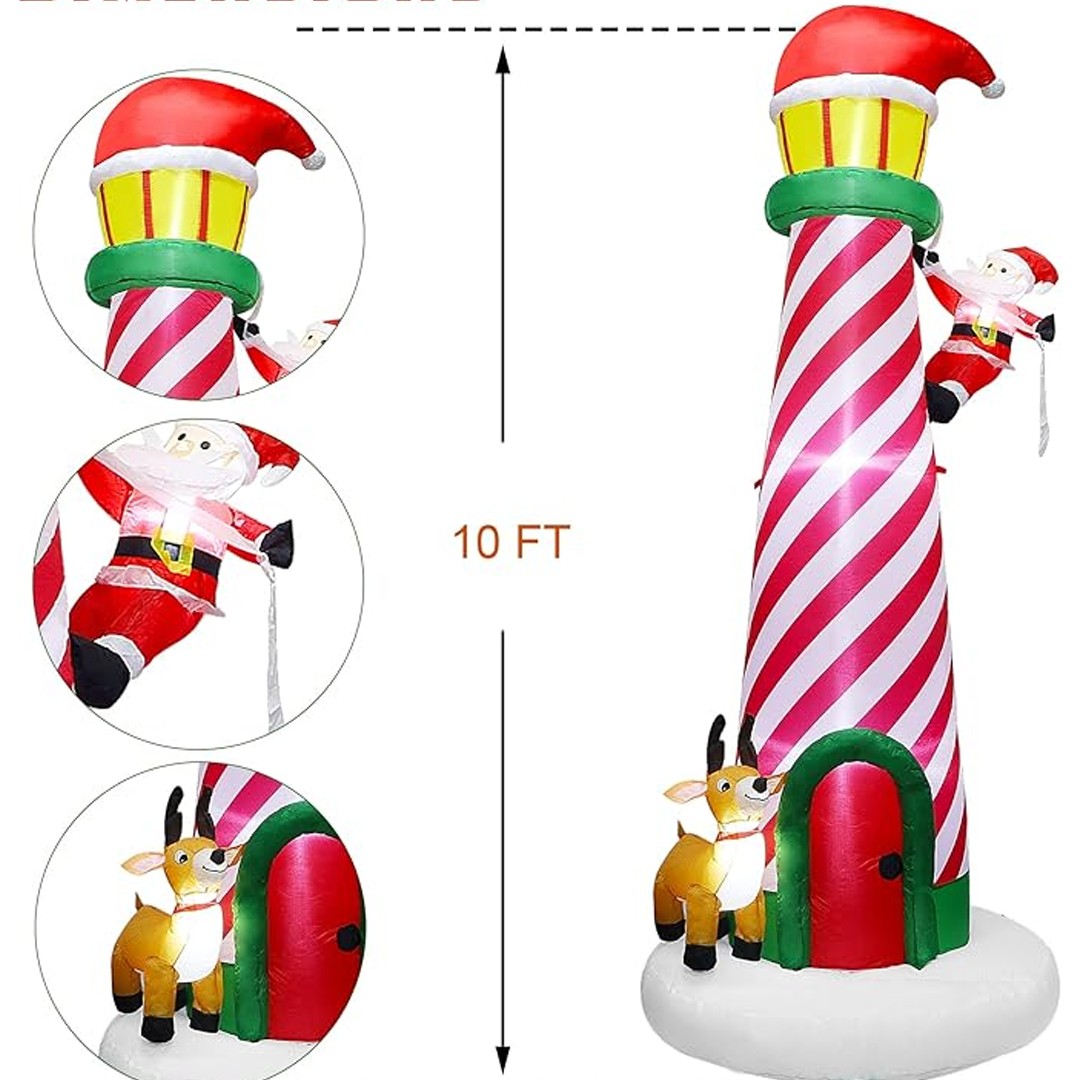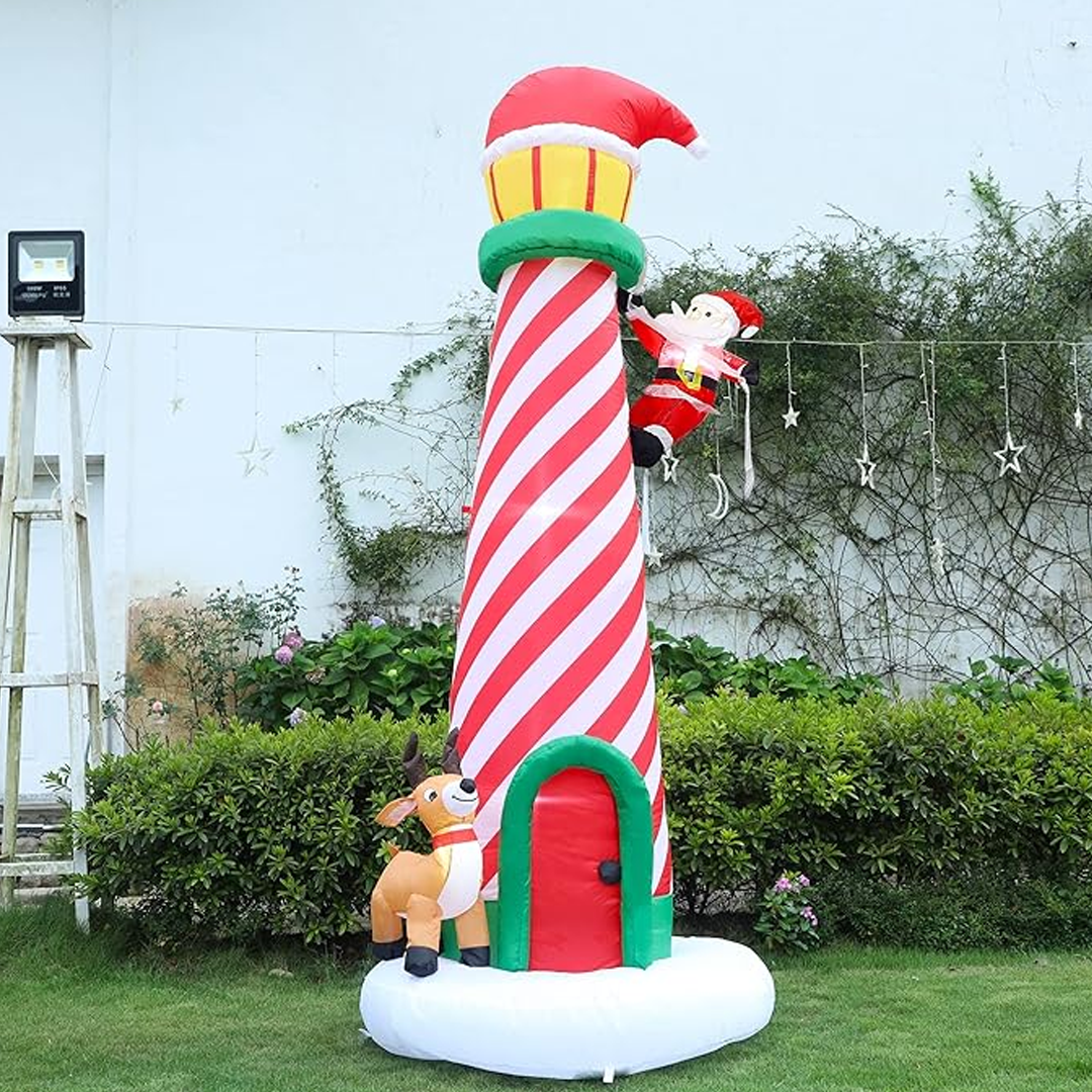 Unesite radost i zabavu u svoj vrt ili dvorište s ovim impresivnim božićnim svjetionikom na napuhavanje visine 3 metra! — unutar 30 sekundi je spreman za upotrebu. Djeluje na struju, što ga čini vrlo jednostavnim za korištenje — jednostavno ga priključite u utičnicu.