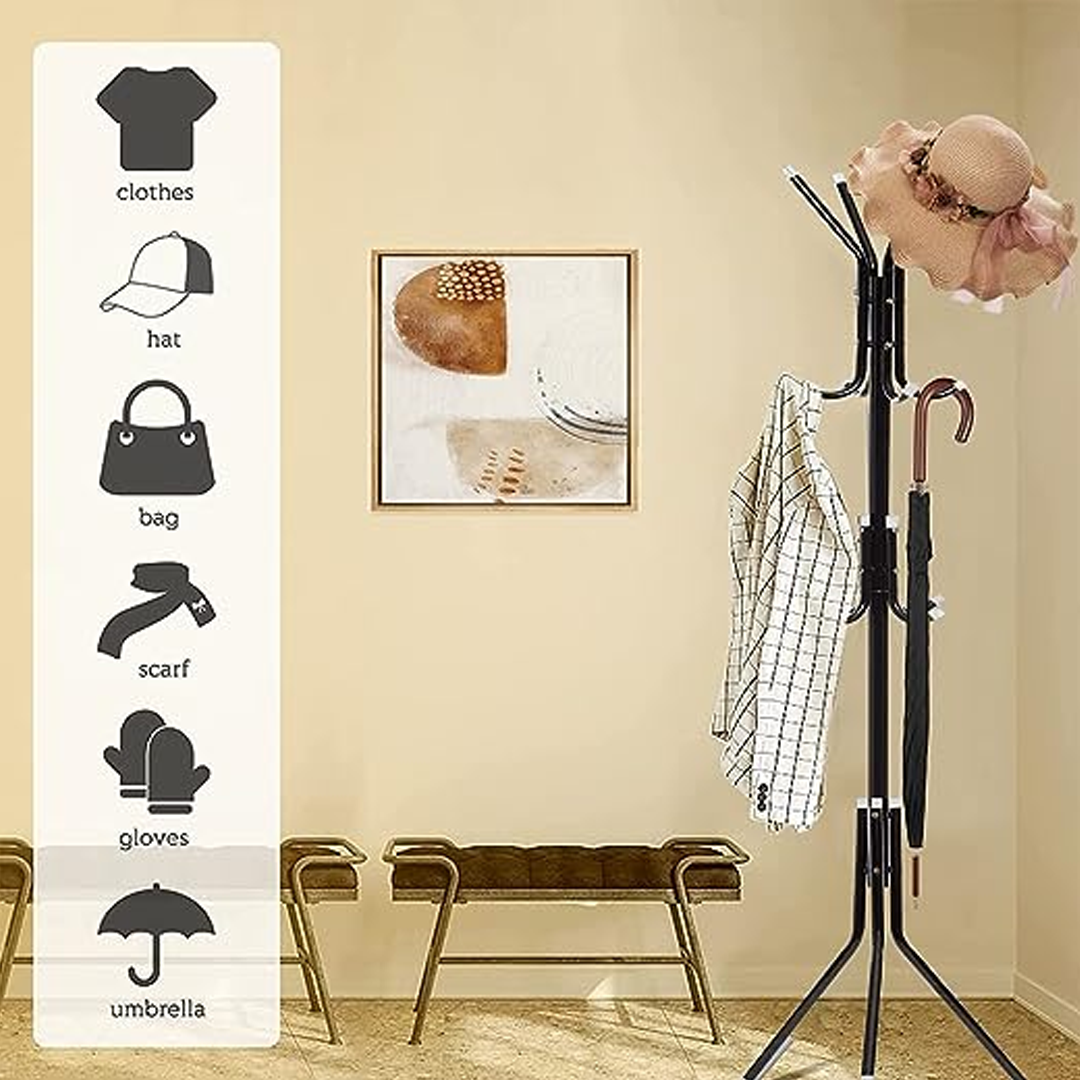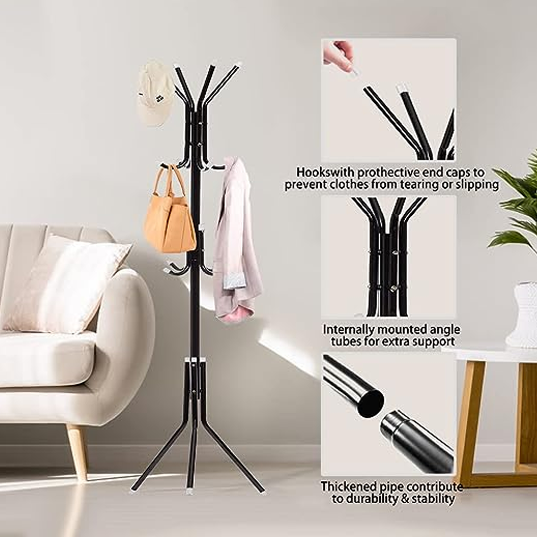 Imate 3 razine kukica za vješanje na ovom samostojećem stalku - ukupno 12 kukica za savršeno organiziranje. 🌟